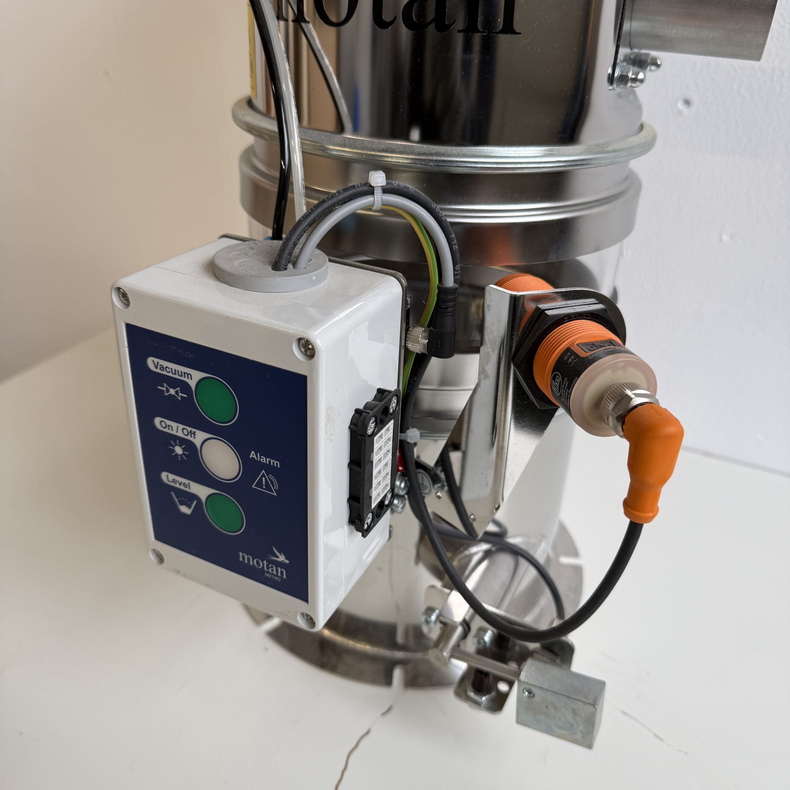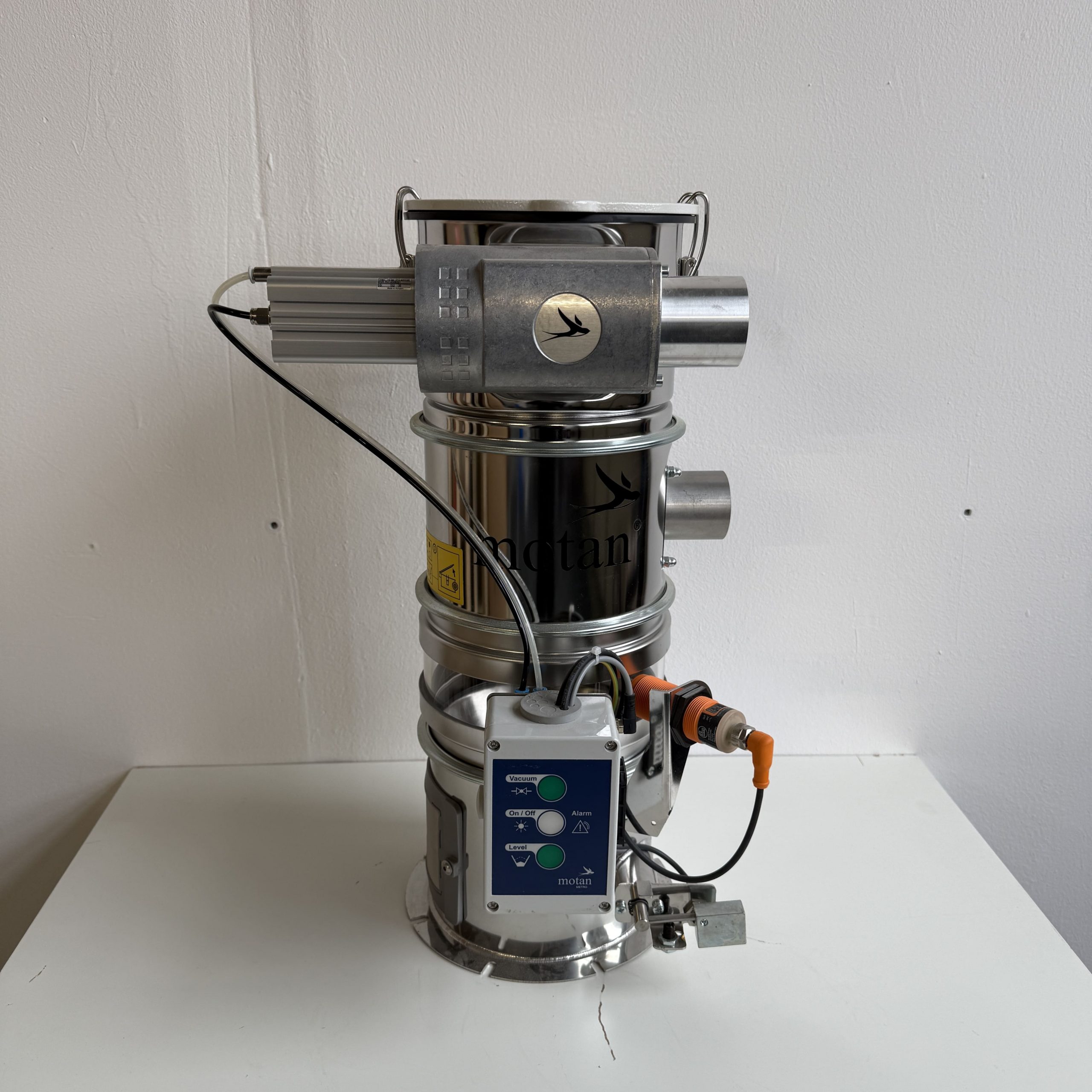 System-Fördergerät in Glas- und Edelstahl-Ausführung für die Förderung von Granulat mit Implosionsventil und Steuerbox. Zur Montage auf einem Materialtrichter oder -behälter mit automatischer Siebreinigung durch Implosion, automatische Materialanforderung über Auslaufklappe und Nährungsschalter. LED-Anzeigen der wichtigsten Funktionen.